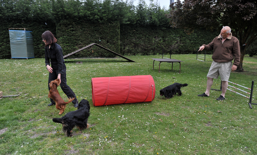 Edelweiss, Erelle et Barnaby ont rendu visite à Dzubba (fille de Shéhérazade et de Fever), qui leur a montré comment un Cavalier joue à l’agility chez Christian et Brigitte ... Les autres Cavaliers ont suivi l’exercice ... un peu.